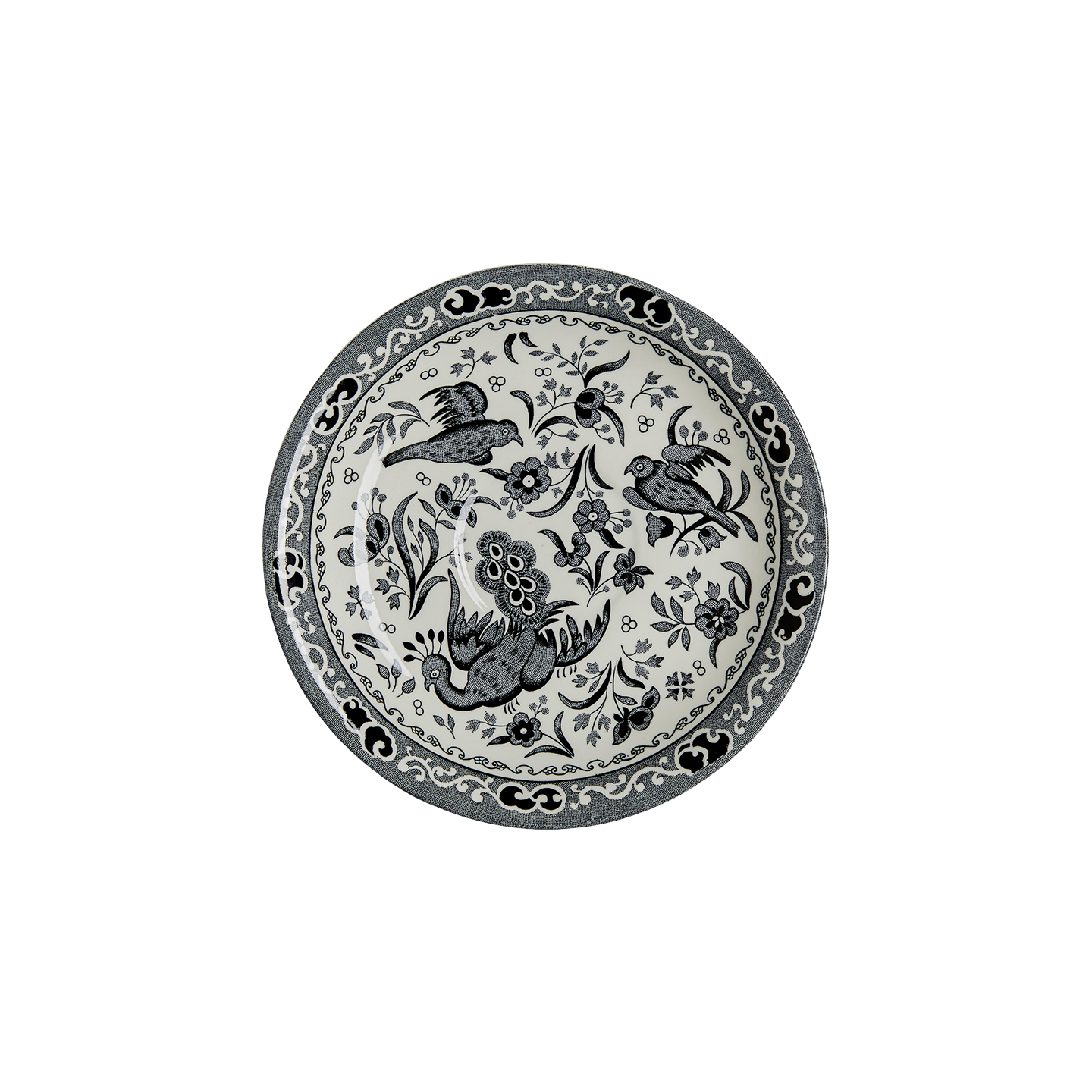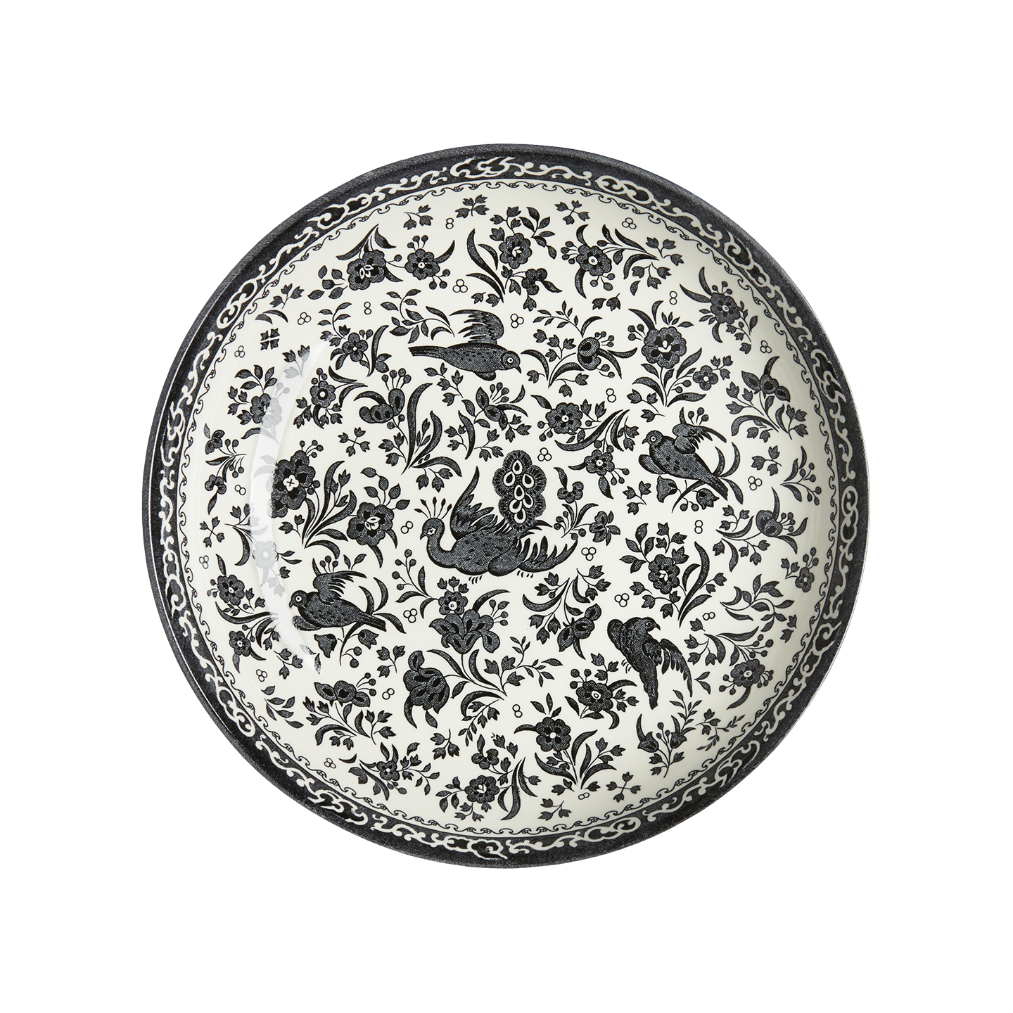 After printing, each piece is given a final glaze and firing, which not only seals in the decoration, but ensures that each piece in the Burleigh Black Regal Peacock collection is dishwasher and microwave safe.