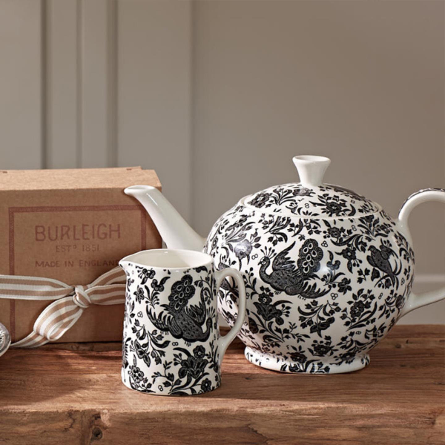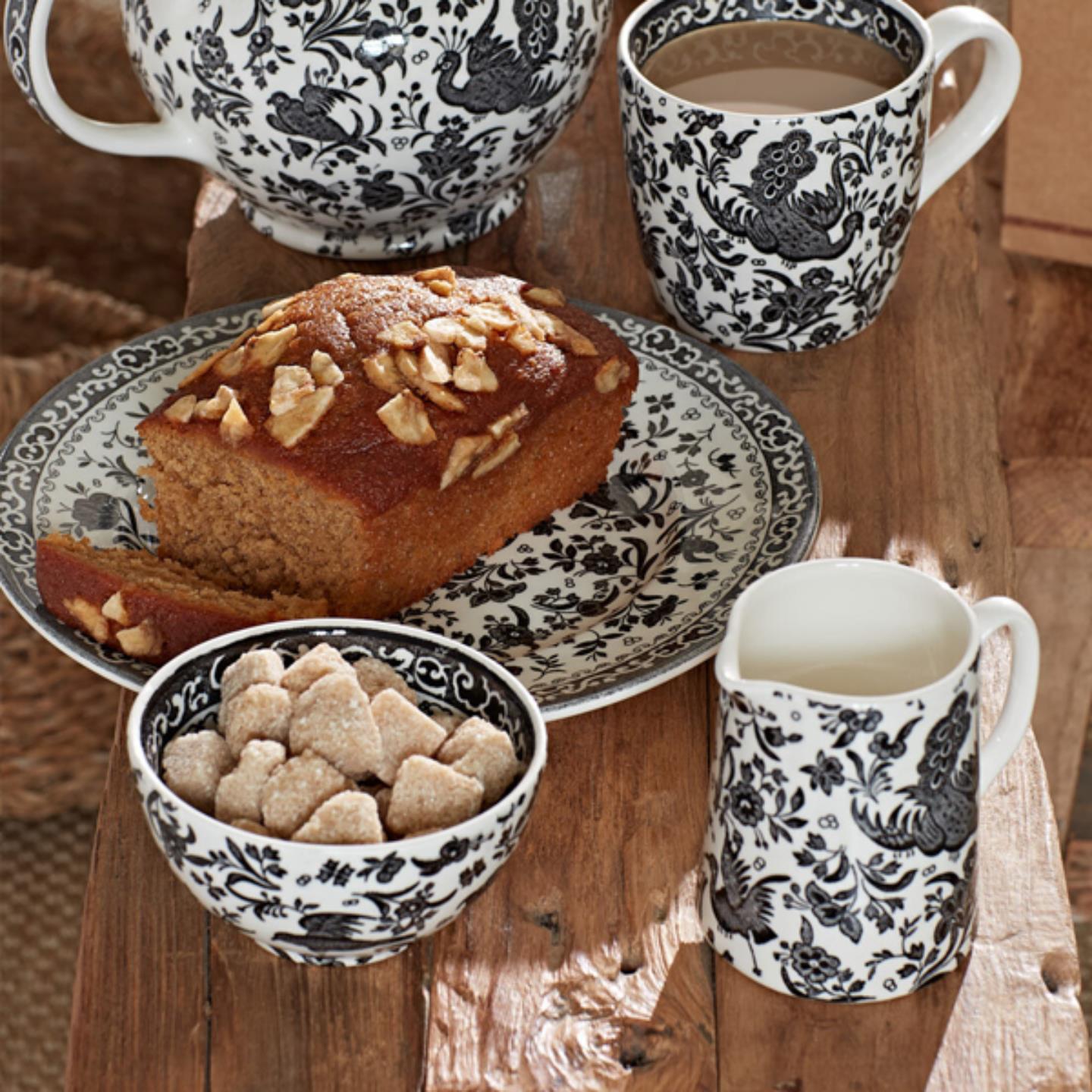 The striking oriental bird motifs and dark, rich color of the Black Regal Peacock collection brings a majestic charm to every occasion. A contemporary and chic take on a Burleigh classic.