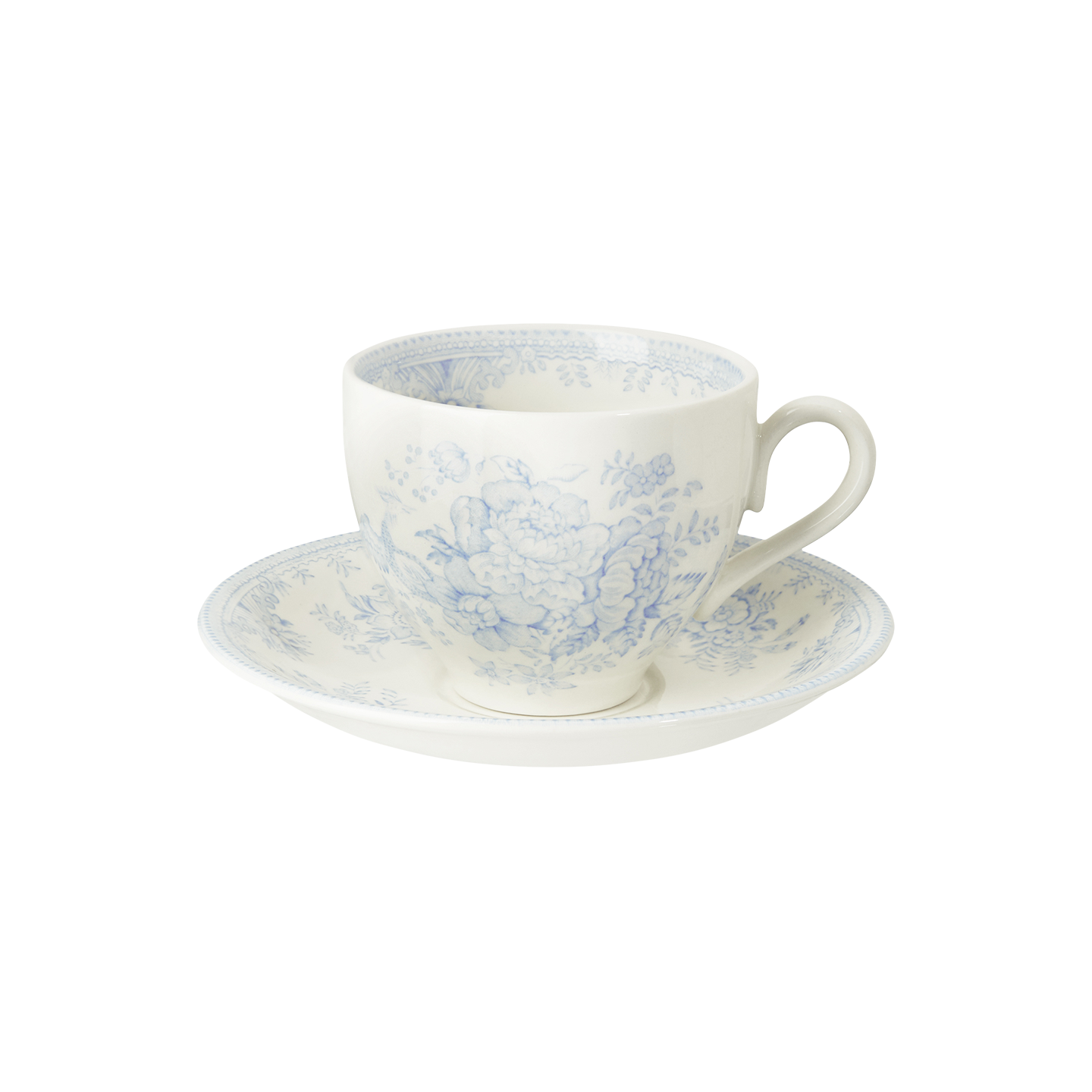 The intricate soft blue flowers of this quintessential design bring elegance and refinement to the table.