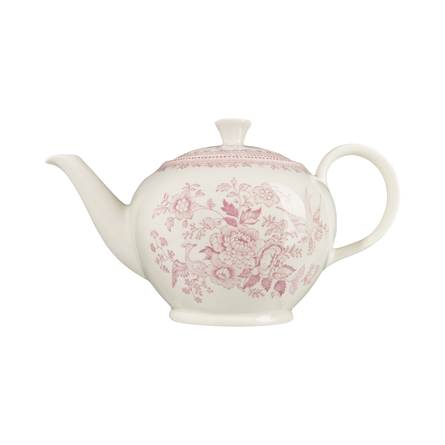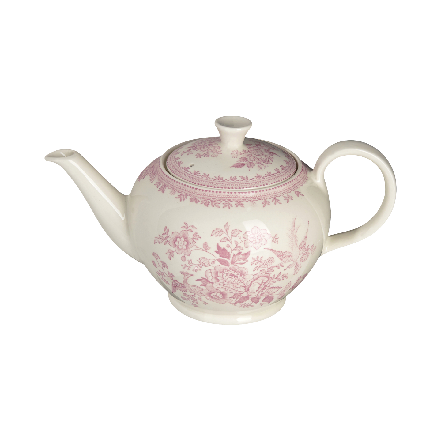 This Pink Asiatic Pheasants collection features everything you need to adorn your dinner table. From everyday pieces like plates, bowls, and teacups and saucers, to occasional items like teapots, jugs, and two and three tier cake stands, you're going to adore this range.
