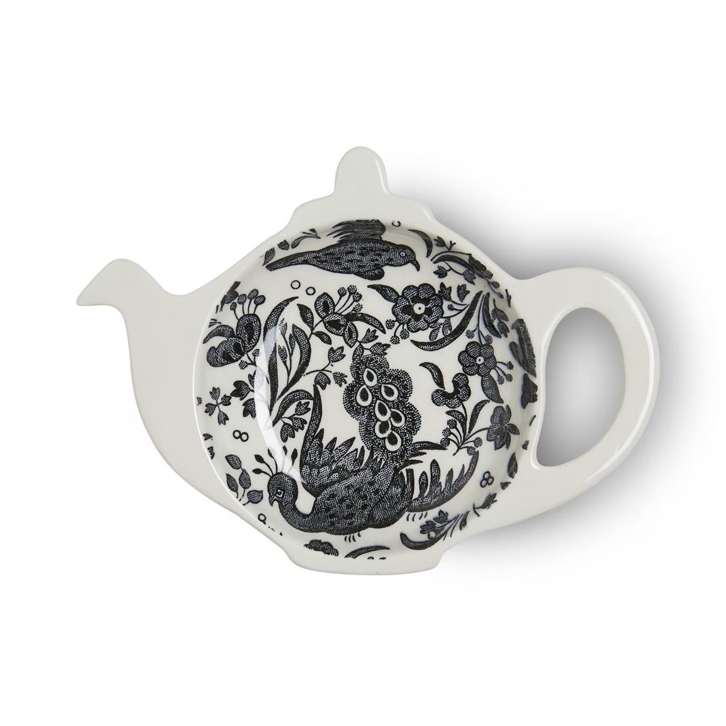 Black Regal Peacock Mini Teapot Tray