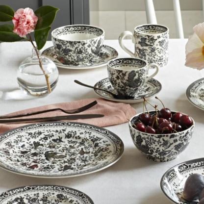 The striking oriental bird motifs and dark, rich colour of the Black Regal Peacock collection brings a majestic charm to every occasion. A contemporary and chic take on a Burleigh classic.