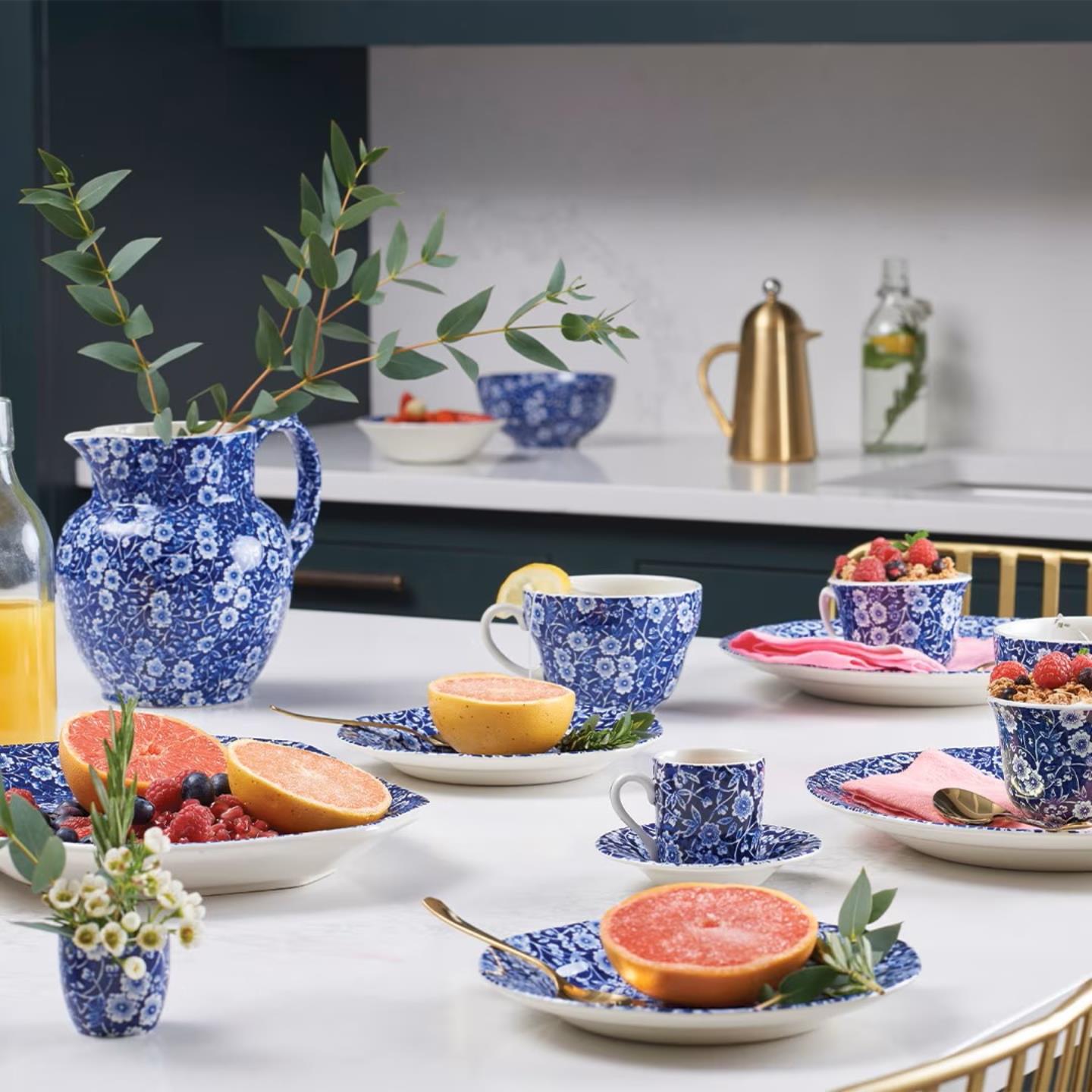Inspired by 19th-century indigo fabrics, Burleigh's Blue Calico tableware range brings quintessential country charm to your home. The rich cobalt blue tones and scrolling blossom design complement both casual family dining and special occasions alike, and we have a fantastic selection of dinnerware items to choose from.
